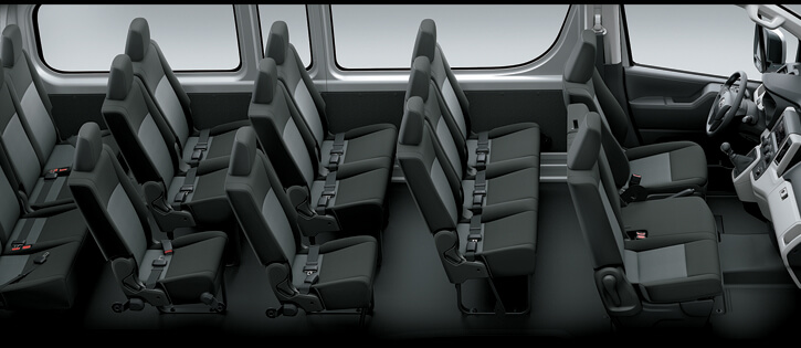 Trải nghiệm không gian nội thất rộng rãi và tiện nghi , 5 hàng ghế được sắp xếp hợp lí tạo nên sự thoải mái tối đa cho người ngồi. Lối đi giữa các hàng ghế tạo sự thuận tiện khi di chuyển từ hàng ghế đầu đến hàng ghế cuối.Động cơ diesel